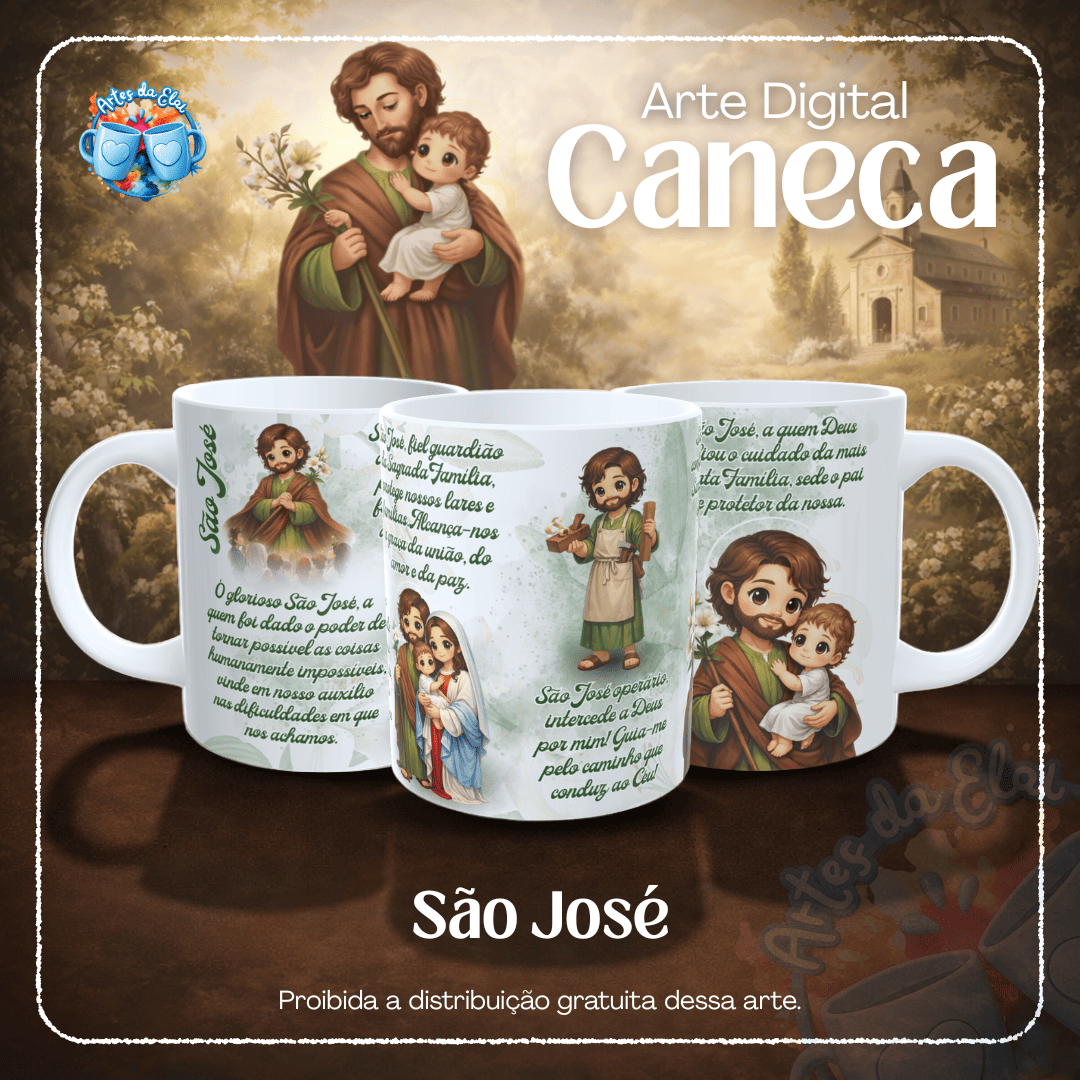 Arte digital São José Oração para caneca